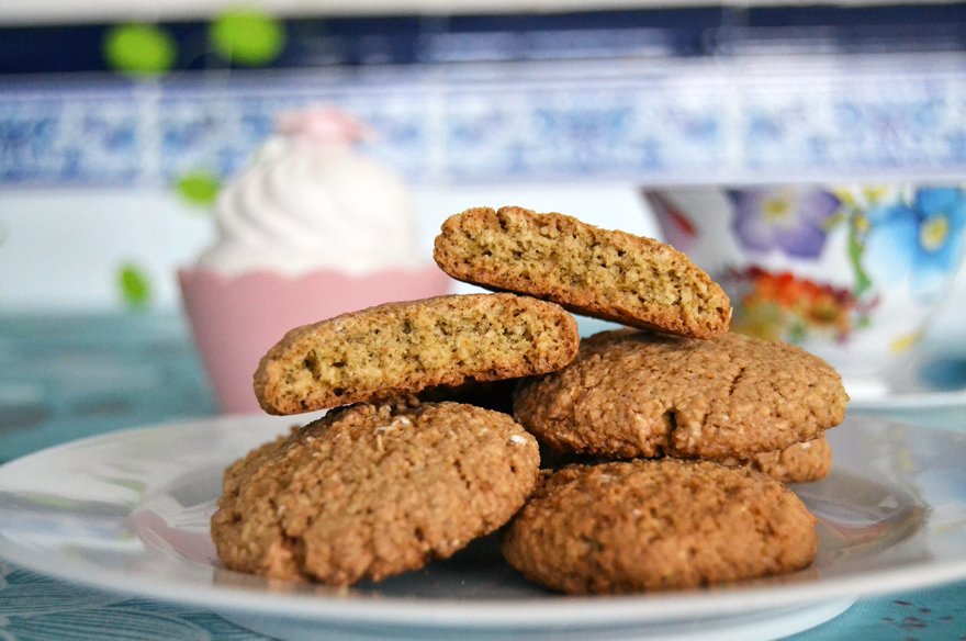 Batir el azúcar con el huevo, incorporar el aceite, la vainilla o ralladura de naranja. Agregar la harina de arroz, avena triturada y entera, el bicarbonato y la sal. Unir todo, agregar los frutos secos y la leche vegetal hasta conseguir una consistencia pesada, homogénea y manejable con las manos. Formar bolitas y aplastarlas en la misma bandeja forrada con papel de horno. Hornear a 180 grados de 15 a 20 minutos, dependiendo de tu horno. Hasta que estén doraditas, no tanto. Función arriba y abajo, sin ventilador. Dejar enfriar en una rejilla, una vez bien frías guardar en un frasco.